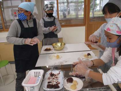 5年生は、これまで田植え、稲刈りを体験してきました。今日は、収穫したもち米を使っておはぎを作りました。初めて作る子供も多く、一つ一つの作業を丁寧に行っていました。とっても上手に作ることができました。