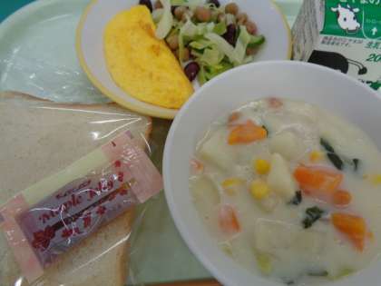 クリーム煮に、星形のにんじんが入っているのを見つけると、何だかうれしくなりますね。メープルジャムも甘くて独特の風味があっておいしかったです。