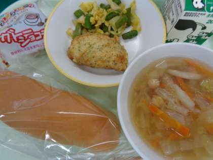 今日は、楽しい・おいしい選択献立の日です。皆さんは何を選びましたか?(写真は魚の香草フリッターとガトーショコラの選択です)どちらを選んでも栄養バランスはバッチリですね。とてもおいしかったです。