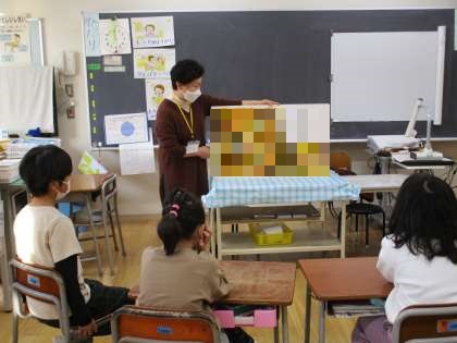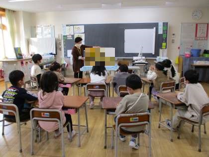 今日は2学期最後の読み聞かせでした。「森のかくれんぼ」という大型絵本を読んでいただきました。何が隠れているのか、子供たちは一生懸命に探していました。