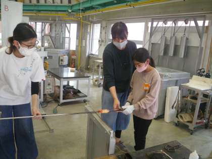 スタッフの方から丁寧に教えていただきながら、自分で選んだ模様になるよう、集中して取り組みました。熱気を感じながらも、楽しみながら作品を作っていました。みなさんの作品は、2月以降に完成します。待ち遠しいですね。