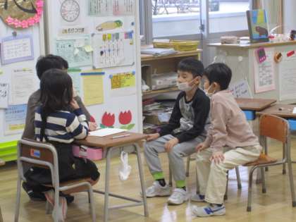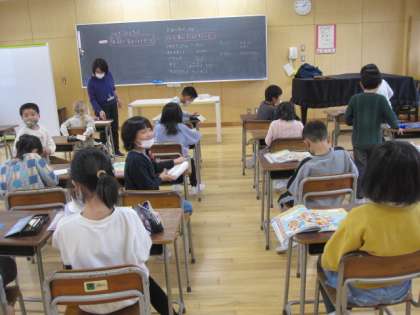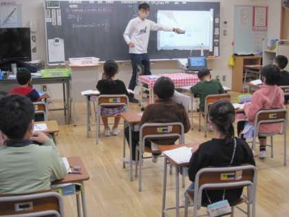 3年生は算数。分数を使ったかさの表し方です。中学校へとつながる大事な基礎ですね。
