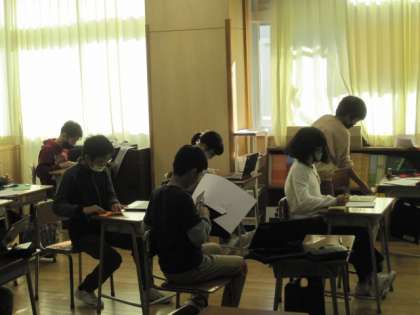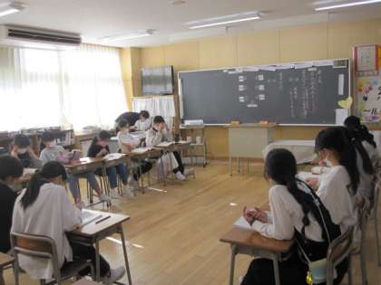 6年生は国語。狂言「柿山伏」をみんなで聴いていました。