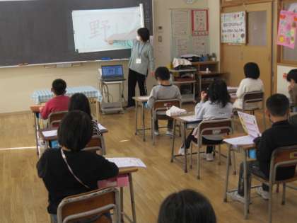 2年生も漢字練習。「野」をみんなでそらがきです。
