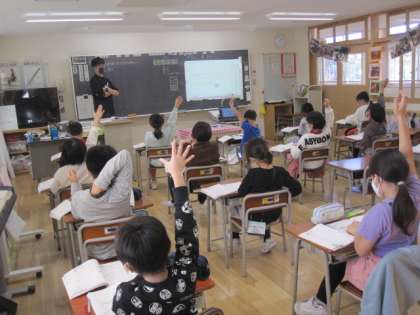 3年生は算数。分数を数直線で表す方法を学習していました。