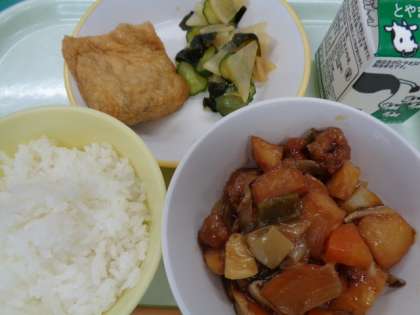 酢豚のジャガイモがほくほくでした。信田巻きは初めて食べましたが、油揚げの中にヒジキやすり身などたくさんの食材が入っていておいしかったです。
