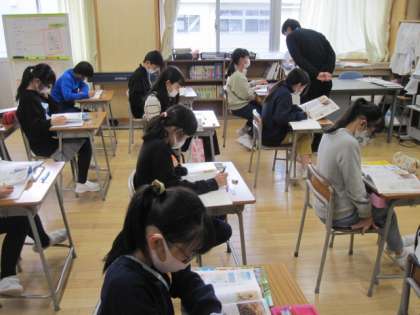 6年生は社会。明治時代の中国やロシアとの戦争について調べています。