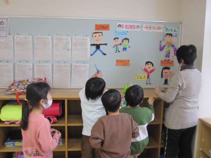 1年生は係活動の掲示物を作っていました。