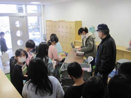 寒い玄関でしたが、借りる本を懸命に探していました。次回は残念ながら2か月後の3月です。