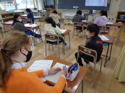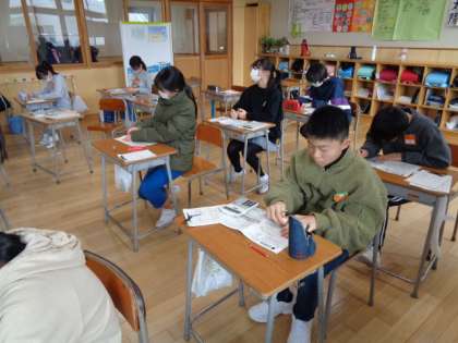6年生は算数。ヒストグラムをかいてデータ分析を学んでいます。