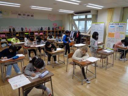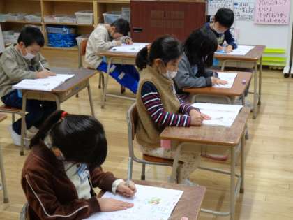 1年生は漢字ドリルをしていました。