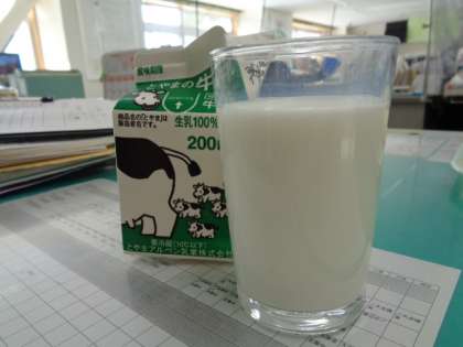 あっさりチキンは、とても食べやすくおいしかったです。校長は検食のためにコップに入れた牛乳を見つめ「5・6年生はおいしい昼食を食べているかな」と想像しながら検食しました。