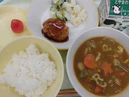 野良猫スープってどんなスープなのかな?と期待していたらカレー味のスープでとてもおいしかったです。アルファベットのマカロニが楽しかったです。本に登場するのらねこボンが作る「のらの味」を表現しているそうです。