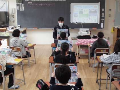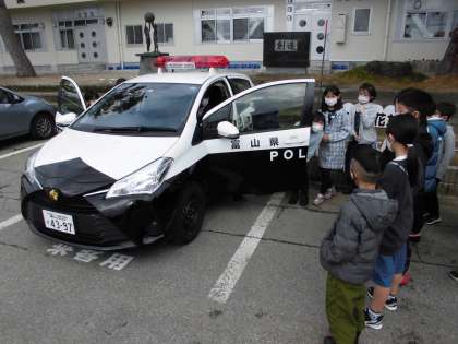今日は浜黒崎駐在所の警察官の方に教室まで来ていただきました。「一番多い事件は何ですか」「落とし物はどこへ行くのですか」等、子供たちは気になることを次々と質問し、意欲的に学習に取り組みました。