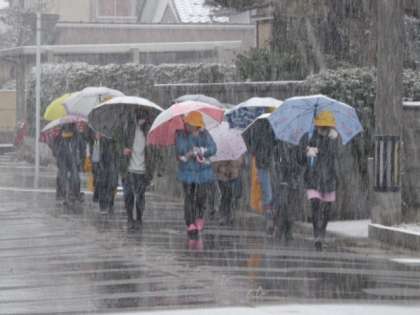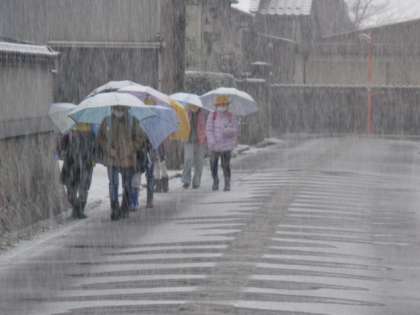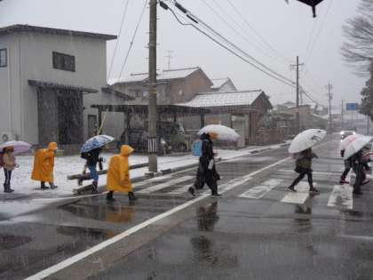 朝から雪が降り始めました。はまっ子たちは今日も元気に登校しています。今週最後の学校生活。朝から元気にあいさつをしていました。