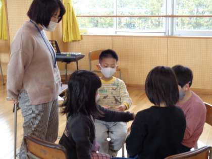 2年生は音楽。わらべうたです。「ずいずいずっころばし」を実際にやっていました。