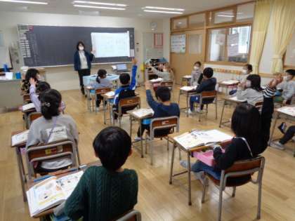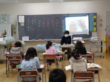 1年生は国語。言葉を見つけて丁寧に書いていました。