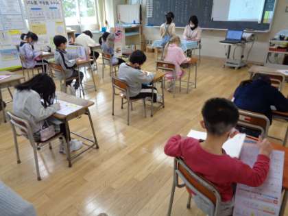 5限は漢字練習です。鉛筆で丁寧に書いています。