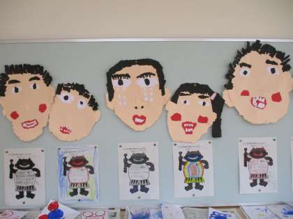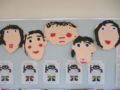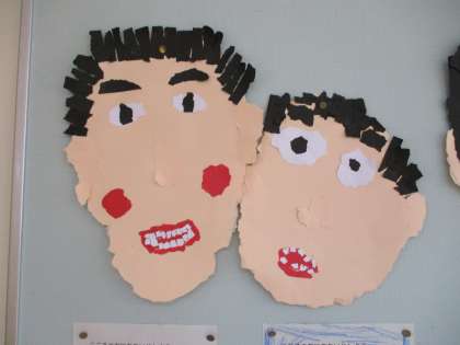 紙版画の型紙として作った「ぼく・わたしのかお」です。一人一人の子供の顔に似ている気がします。誰だか分かりますか。
