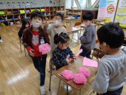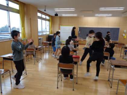 3年生は音楽。いろんな楽器を使ってリズムを感じています。