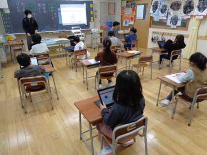 2年生は算数。まとめの問題を解いて答え合わせをしていました。