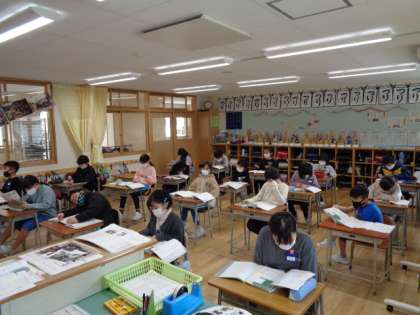 はまっ子たちは今日も元気に登校しています。登校の様子は撮影できなかったので、2限目の授業風景です。
