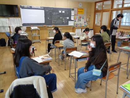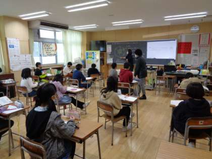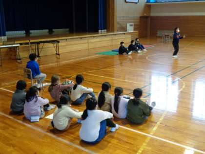 4年生は体育館で「学びの発表会」の練習をしていました。