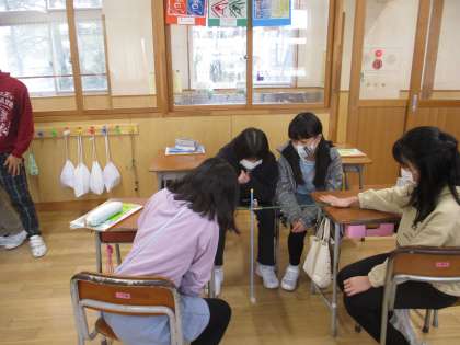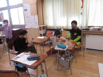 5年生の理科では、「ふりこのきまり」の学習をしています。今日は、棒と目玉クリップ、粘土を使って、簡単な振り子を作り、曲に合わせてふれるよう工夫しました。子供たちは、粘土のおもりをつける場所を変えたり、おもりの重さを変えたりして、リズムに合うように工夫を重ねていました。どの子も楽しみながら学習に取り組むことができました。