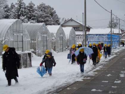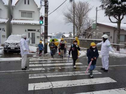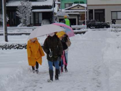 今朝も雪の朝となりました。はまっ子たちは今日も元気に登校しています。