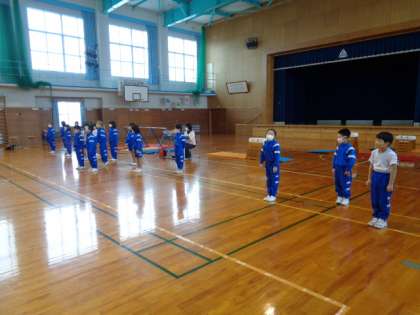 学びの発表会「成長した姿をみてもらおう〜成長したね発表会〜」の通し練習をしていました。決めのポーズをしっかり行うことや大きな声で返事をすること、きびきびとした準備などを確認しました。