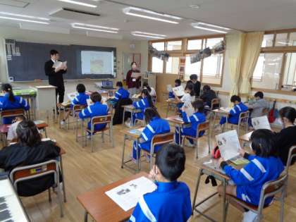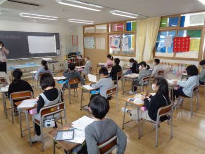 1年生は図工。「にょきにょきとびだせ」づくりです。
