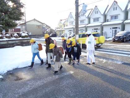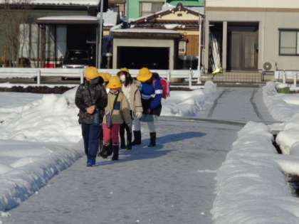 今朝も少し積雪がありましたが、太陽がまぶしい朝となりました。はまっ子たちは今日も元気に登校しています。ところどころ凍結があり、子供たちは慎重に歩いていました。