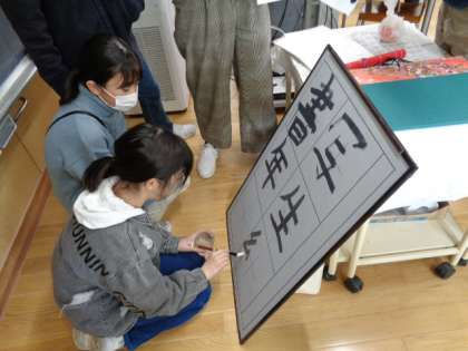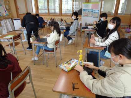 4年生は算数。立体の展開図や見取り図の勉強をしています。