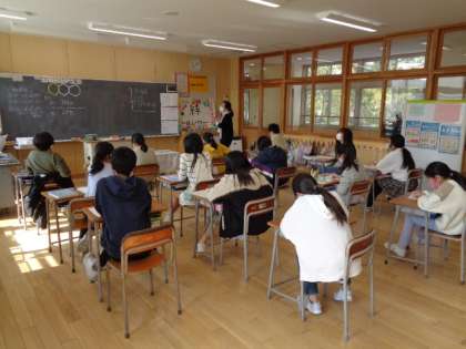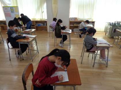 6年生は算数。まとめの学習で、様々な問題に挑戦しています。
