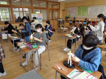 6年生は図工。10年後の自分の姿、少しずつ形になってきました。