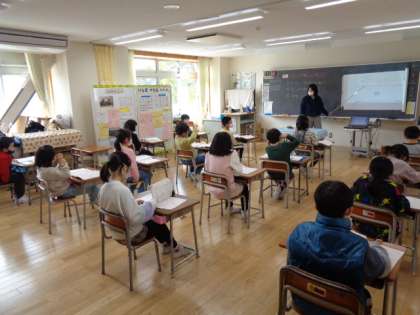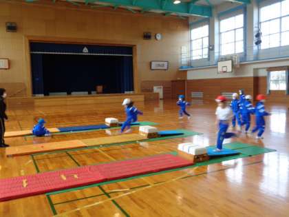 1年生は体育。とび箱を軽やかに跳んでいます。