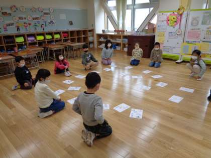 今日、朝のぐんぐんタイムの時間に、目玉ちゃんかるた大会をしました。