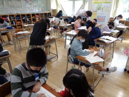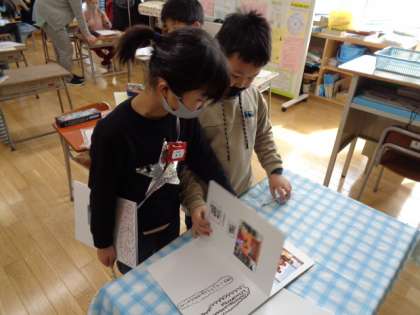 2年生は出来上がったおもいでブックを見せ合っていました。