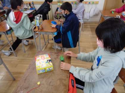3年生は理科。じしゃくのおもちゃを作って学んでいます。