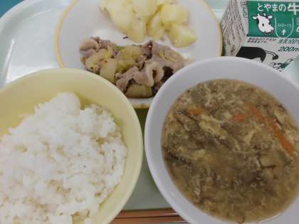 キムチ炒めでしたが、辛みもマイルドで食べやすかったです。もずくのスープが優しい味でした。