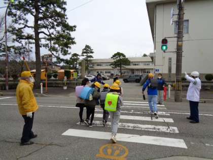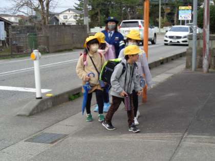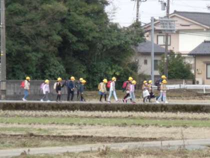 明日が卒業式ということで、6年生は最後の集団登校となりました。1〜5年生を後ろから見守る姿はとても立派でした。はまっ子たちは今日も元気に登校しています。
