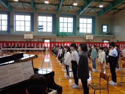 卒業生と在校生による門出の言葉です。言葉に気持ちをのせてしっかり伝え合うことができました。卒業生の合唱がとてもきれいに優しく体育館いっぱいに響きました。在校生の合唱も大きな声でよく聞こえました。