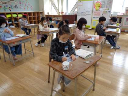 2年生はクロムブックでドリル学習をしたり、思い出ブックを読んだりしていました。