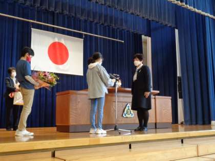 修了式に引き続き、この3月で退職する教職員、浜黒崎小学校を離任する先生方の挨拶がありました。一人一人のお話や子供たちの感謝の言葉を聞きながら思い出を振り返ると、楽しかったことばかりよみがえってきます。ありがとうございました。