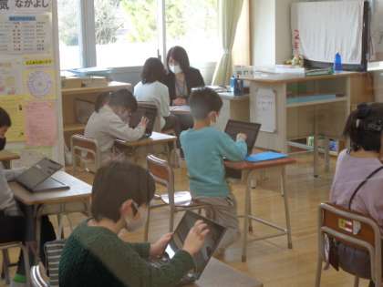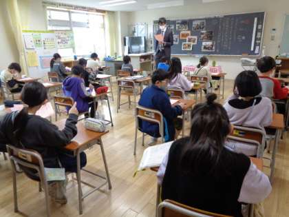 修了式等が終わり、教室に戻った後の教室の風景です。担任から一人一人に修了証が渡され、最後の学級活動を行っていました。