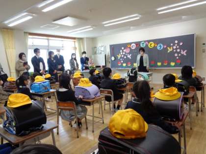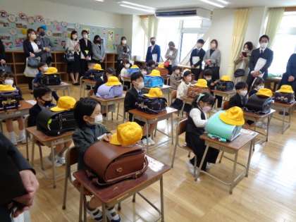 式の後、教室で担任の先生と過ごしました。毎日の学校生活が楽しみな様子でした。