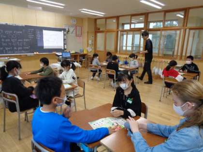 5年生は外国語。グループで話し合いです。
