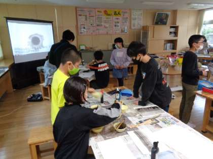6年生は図工。墨と水を使った素敵な世界を描いていました。