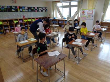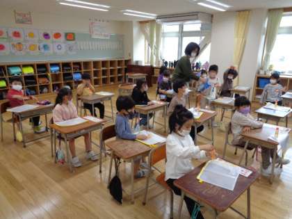 2年生は書写。鉛筆の持ち方と姿勢を意識して書いています。