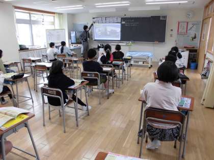 6年生は国語。つないで、つないで、一つのお話・・・つながりましたか。